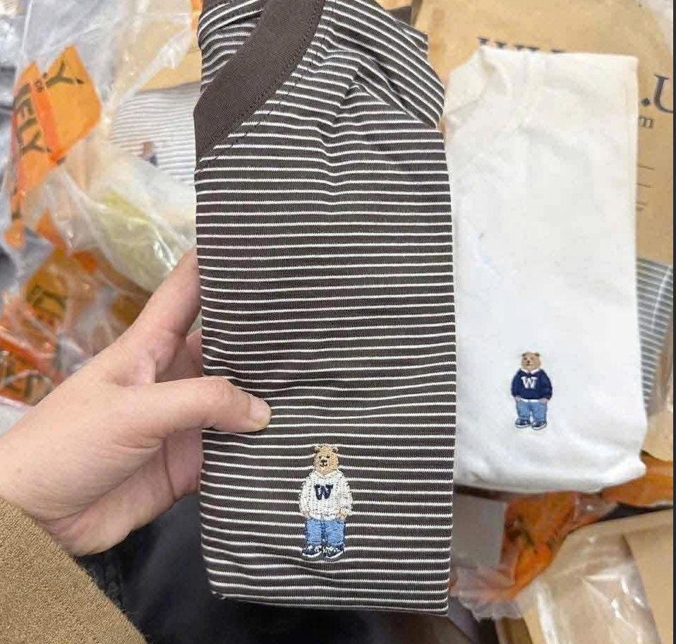 Set 2 Áo Phông WHOAU Tshirt Màu Trắng - Kẻ Nâu [ WHRSG2351U85 ]